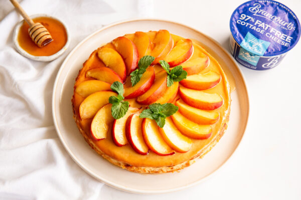 This Peach Cheesecake is a light, seasonal treat, perfect for enjoying on a warm summer day. Made with Brancourts 97% Fat Free Cottage Cheese, it’s naturally creamy yet low in fat, making it a healthier alternative to traditional cheesecakes. This cake is simple to prepare, gluten-free and light—ideal for sharing with family and friends during sunny afternoons. Brancourts cottage cheese not only enhances the texture but also contributes calcium and protein.